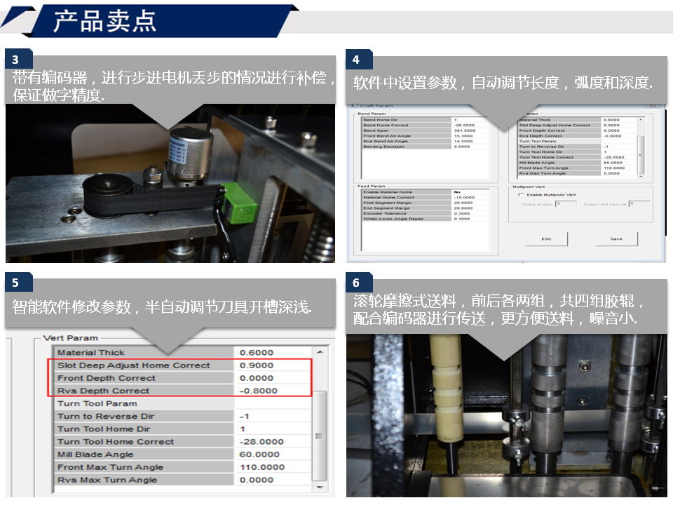 3.帶編碼器,送料精準,步進電機扭距大,不容易打滑丟步,后續做字加工節約成本和時間;當機器長了或者是短了1mm的時候,編碼器就會介入,來進行長度補償;