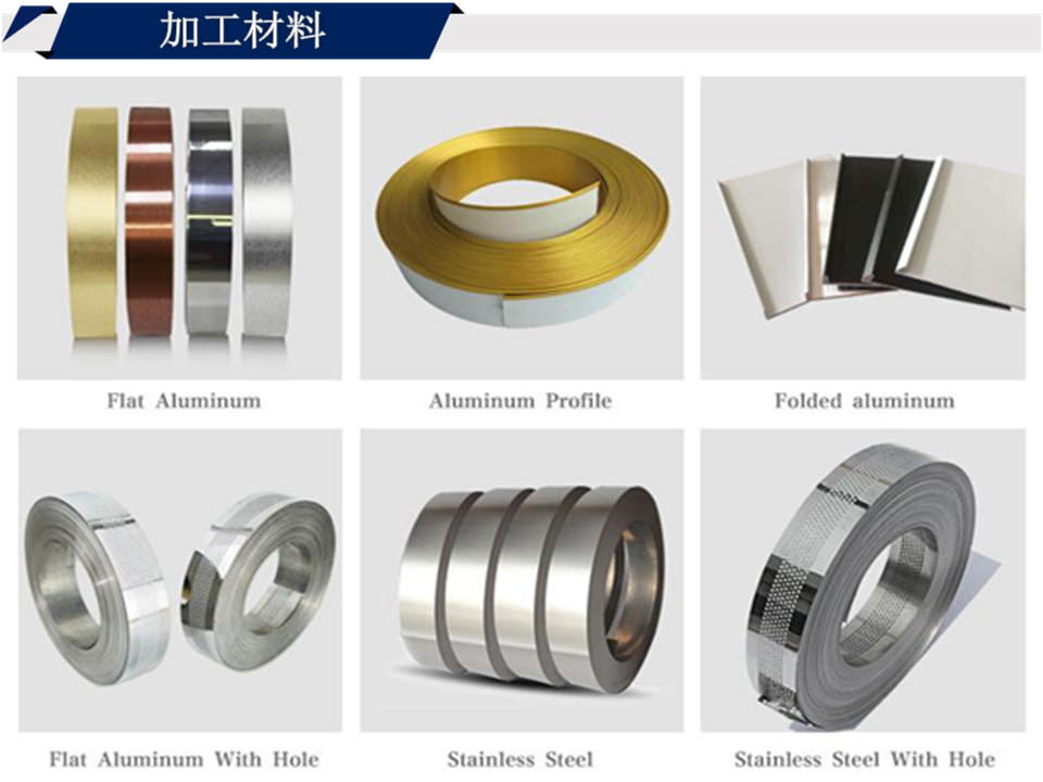 1.可加工不同材質:不銹鋼和鋁邊帶;