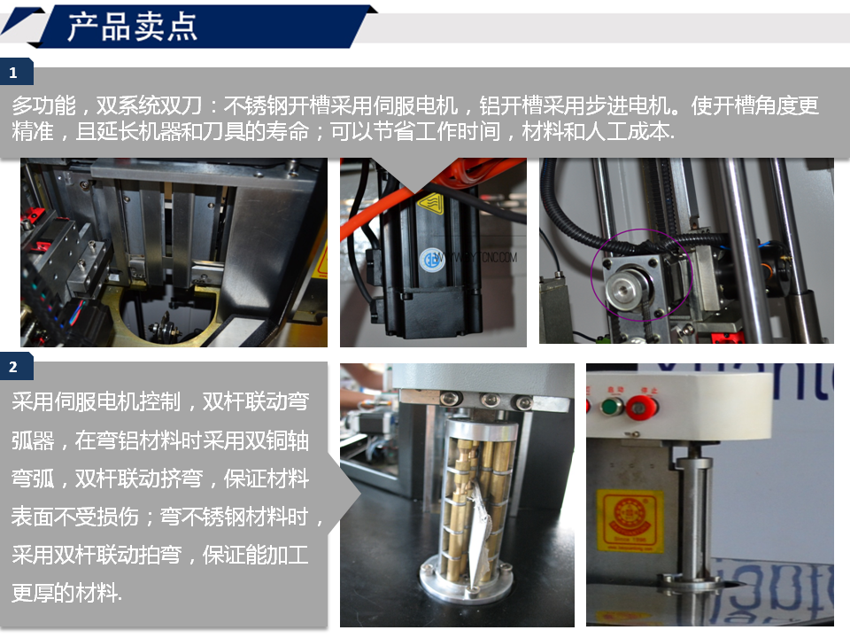 4.不銹鋼系統推退刀由伺服電機控制,定位精準;這個定位也是通過參數來調節的,比如不同高度的材料,不同厚度的材料,都可以通過參數來調節伺服電機的一些設置,從而達到調節簡單,定位準確;