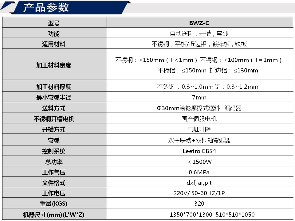 設備特點介紹:1.可加工不同材質:不銹鋼和鋁邊帶;2.調試簡單,只需要調整幾個參數(深度,長度和弧度)即可工作;3.帶編碼器,送料精準,步進電機扭距大,不容易打滑丟步...