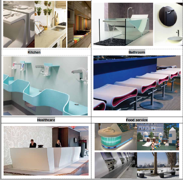 可麗耐的行業應用,藝術與家具設計,廚房,衛浴,外墻應用,透光應用,醫療保健,餐飲服務,辦公室,酒店,公共空間等