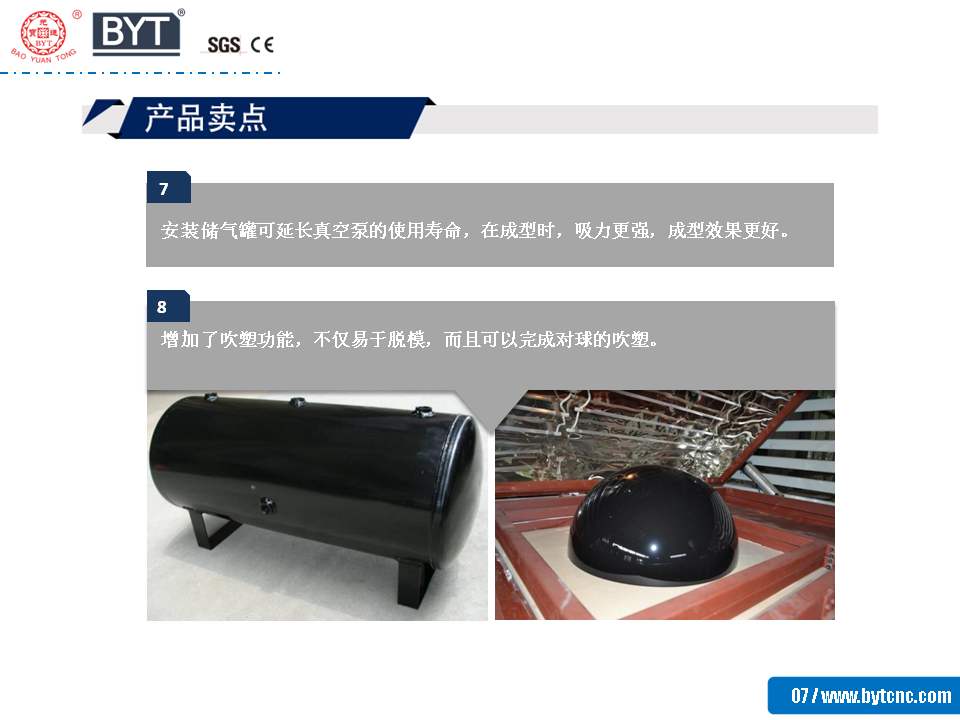 7.安裝儲氣罐可延長真空泵的使用壽命,在成型時,吸力更強,成型效果更好。